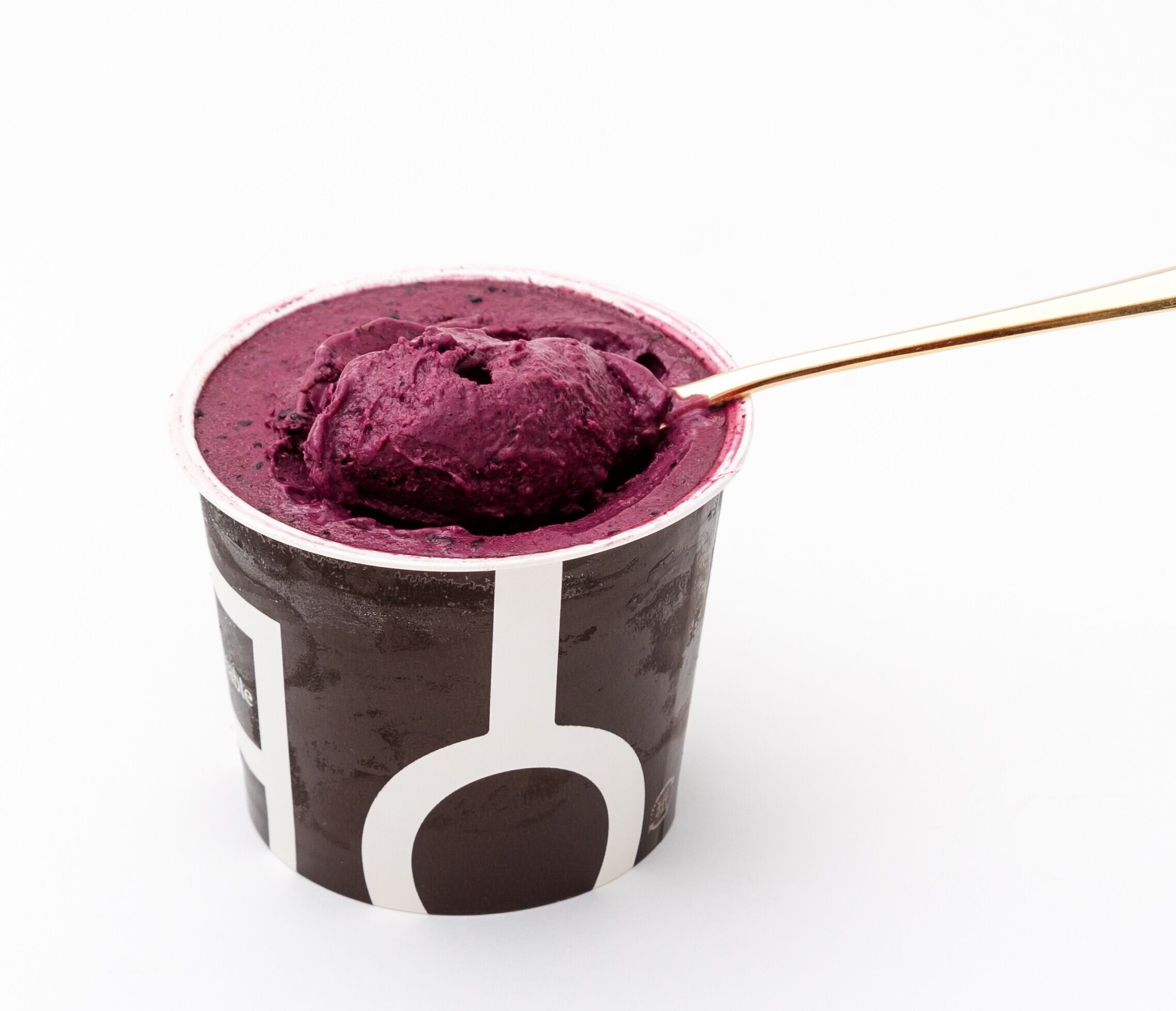 ポリフェノールをたっぷり含むなつはぜピューレ40g(36%)を使用した濃厚なアイスです。甘味にはてんさい糖を使用しています。保存料や着色料は使用しておらず、ナツハゼ特有のさわやかな酸味のあるアイスです。