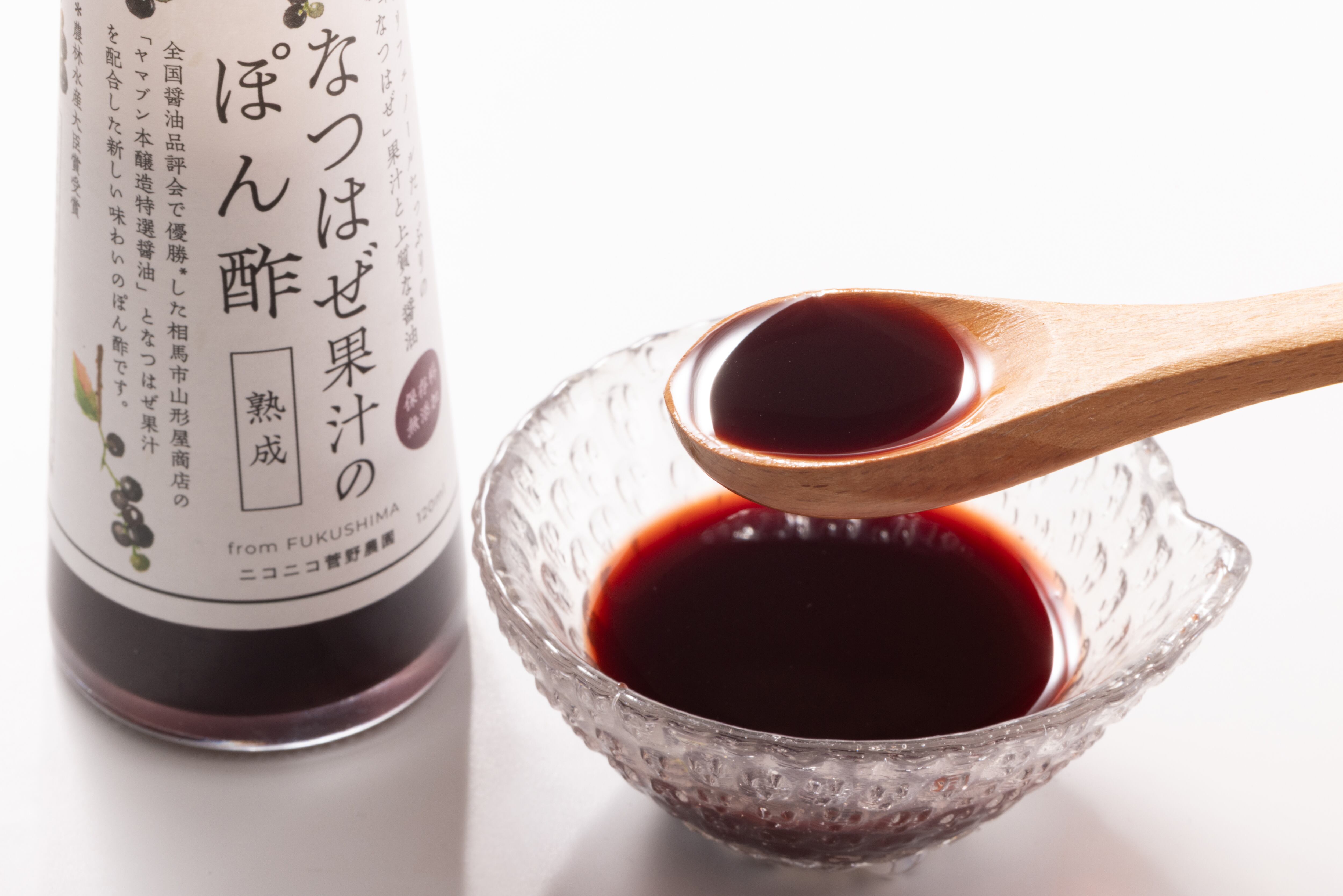 ポン酢:ナツハゼ(福島県産)、しょうゆ(福島県内製造)、鰹節(鹿児島県産)、昆布(北海道産)